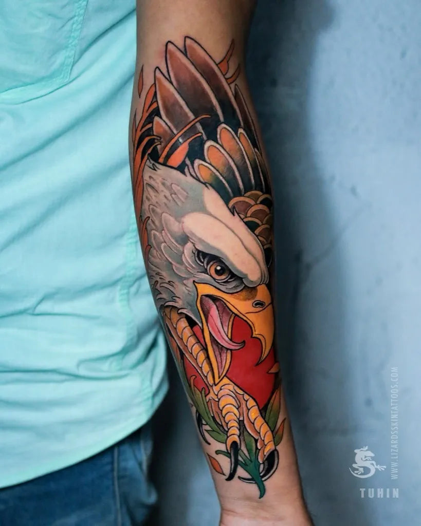 Big Neo Traditional Eagle on Men Arm Tattoo by @lizardsskintattoos
