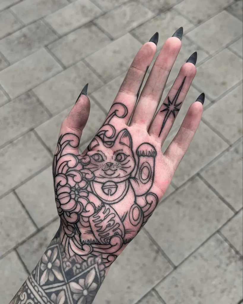 - Single-pass workflow: The outline tattoo is drawn with a liner needle, focusing on clean, continuous lines. Once each line is placed correctly, it’s done.