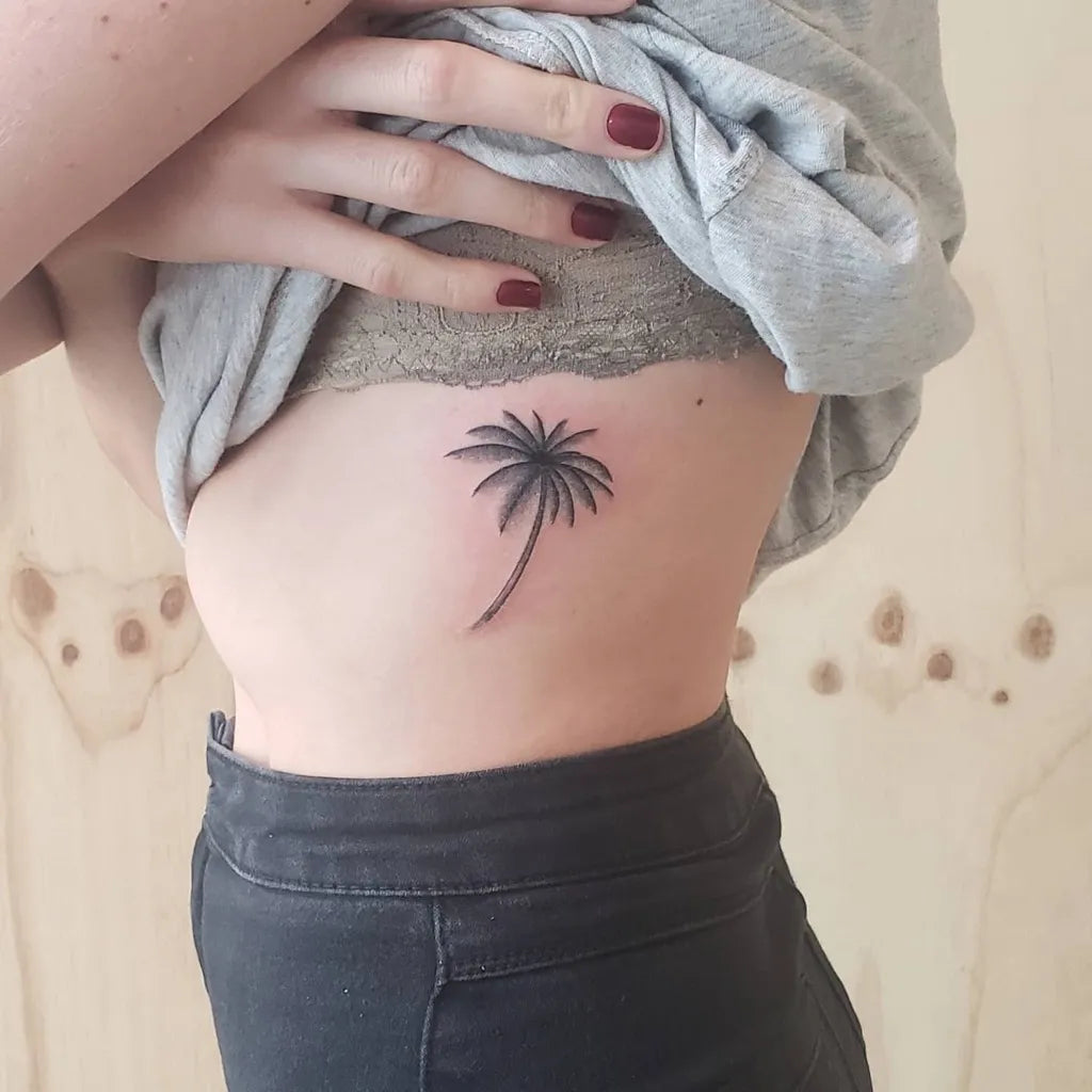Small Blackwork Palm Tree Tattoo on Women Rib by @tattoosbyjoelv