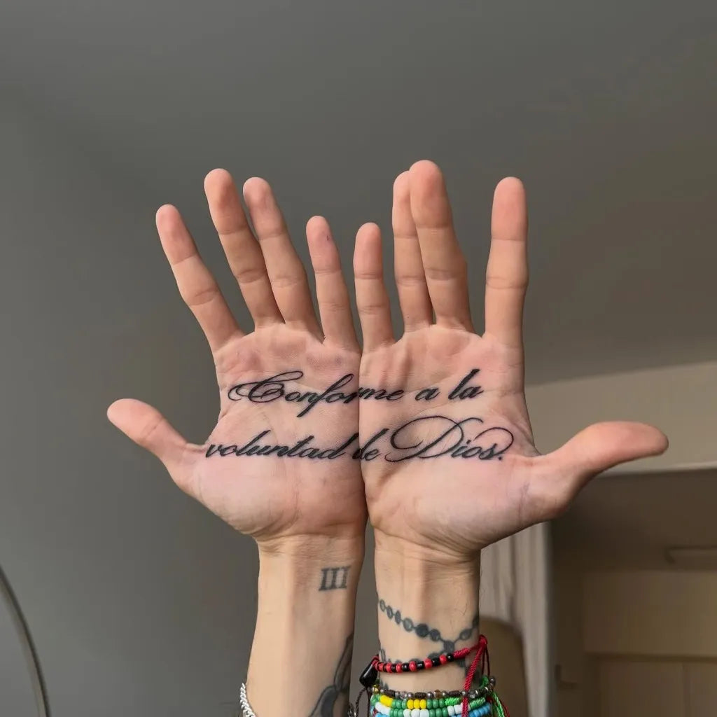 • Contrast matters: Black or dark grey ink keeps quote tattoos readable; add small flourishes or separators for emphasis.