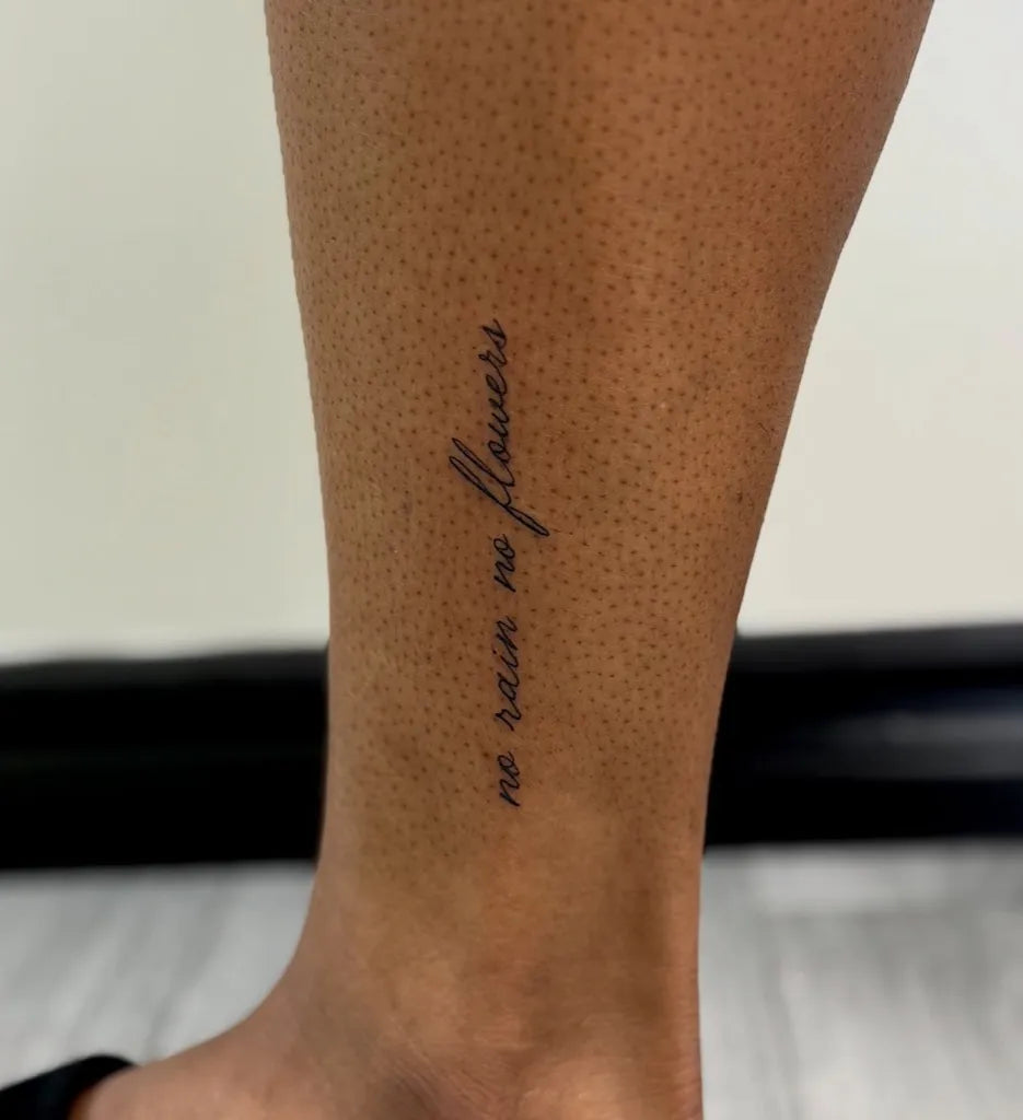 • Ankle/foot: Works for brief quote tattoos; higher friction and sun can fade faster—bold fonts help longevity.