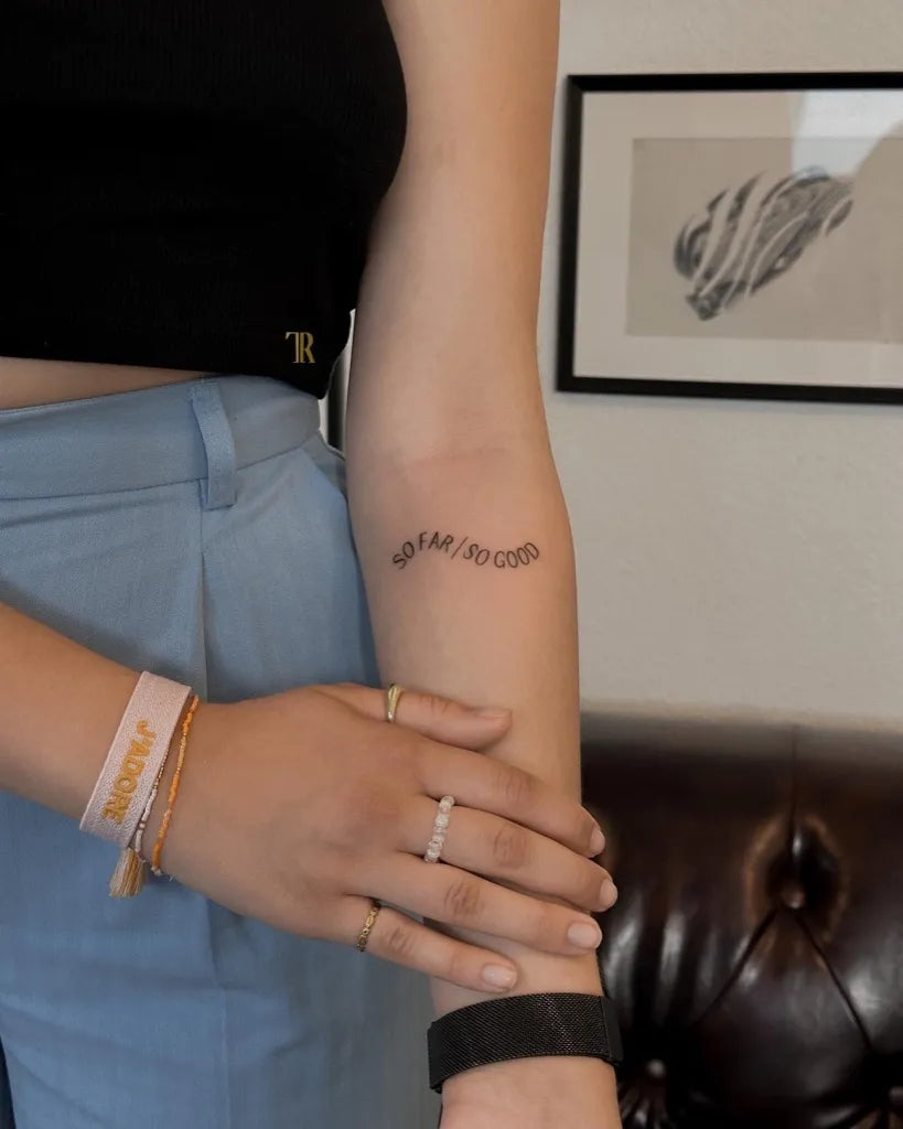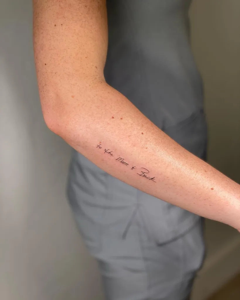 • Forearm (inner or outer): Top choice for quote tattoos. Flat surface, moderate pain, easy to read yourself. Great for 1–2 lines in a clean serif or script.