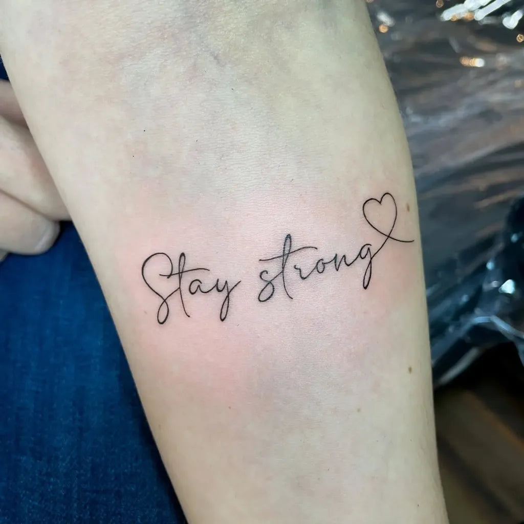 Small Minimalist Text Quote Tattoo on Women Arm by @room26_reutlingen