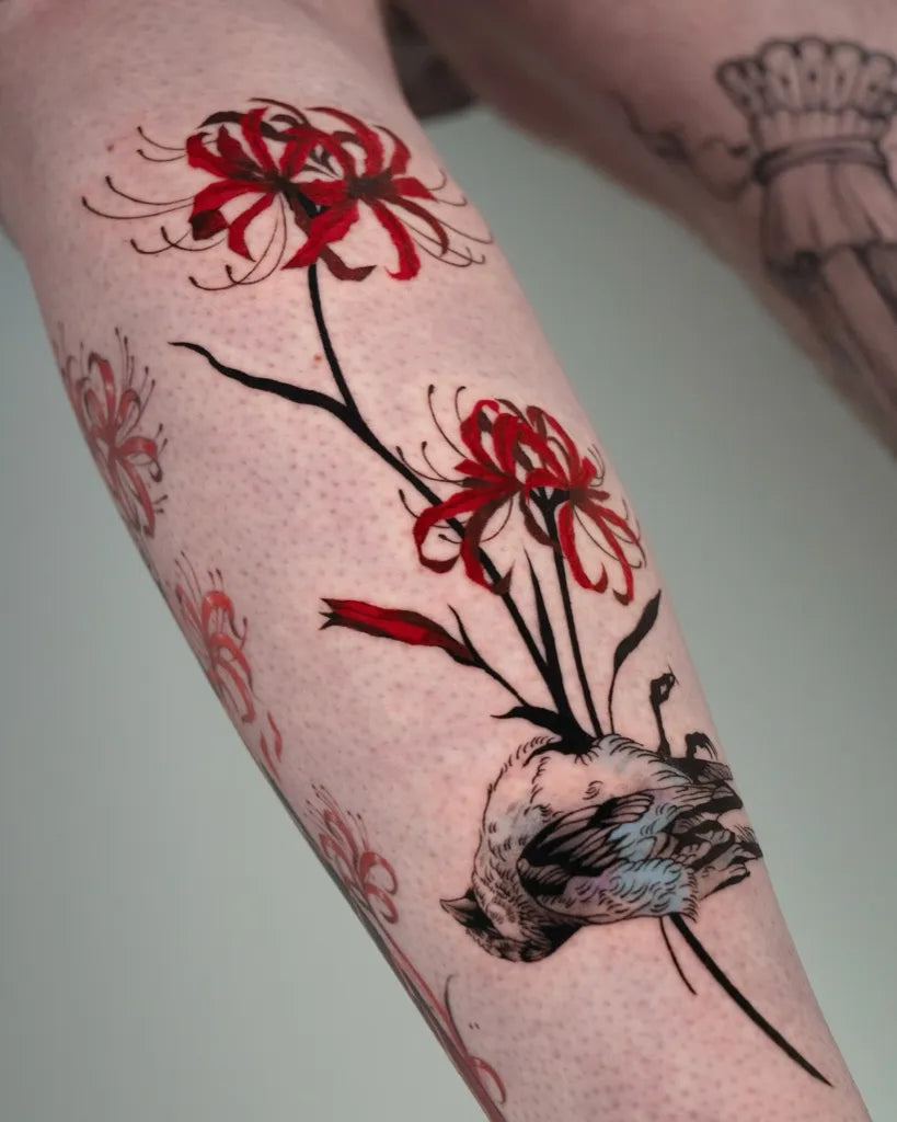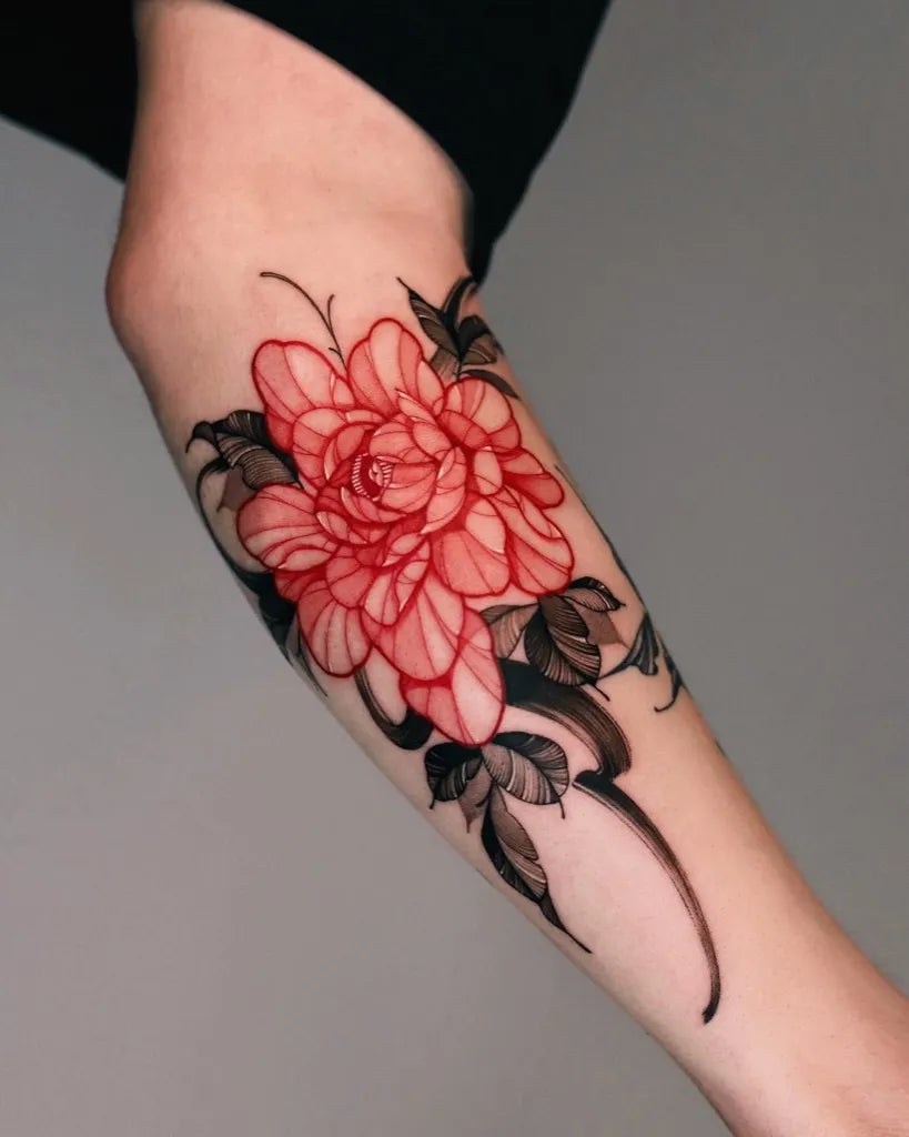 - Higher saturation: Artists typically pack red ink densely to achieve true, vivid color. Extra passes mean more trauma to the skin, which can lengthen the healing timeline compared to black or grey wash.