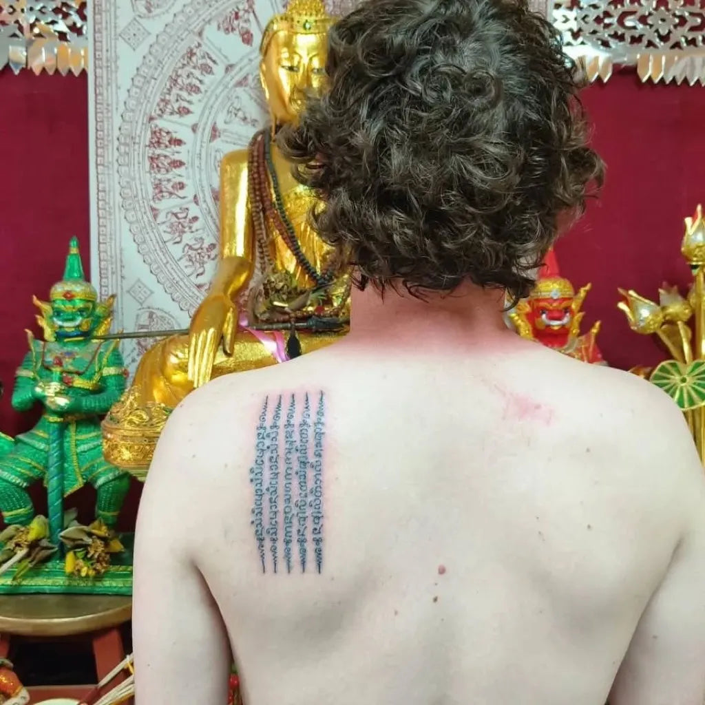 • Avoid pools, hot tubs, and direct sun during healing (about 2–3 weeks). After healing, use SPF 30+ to protect the Sak Yant tattoo from fading.