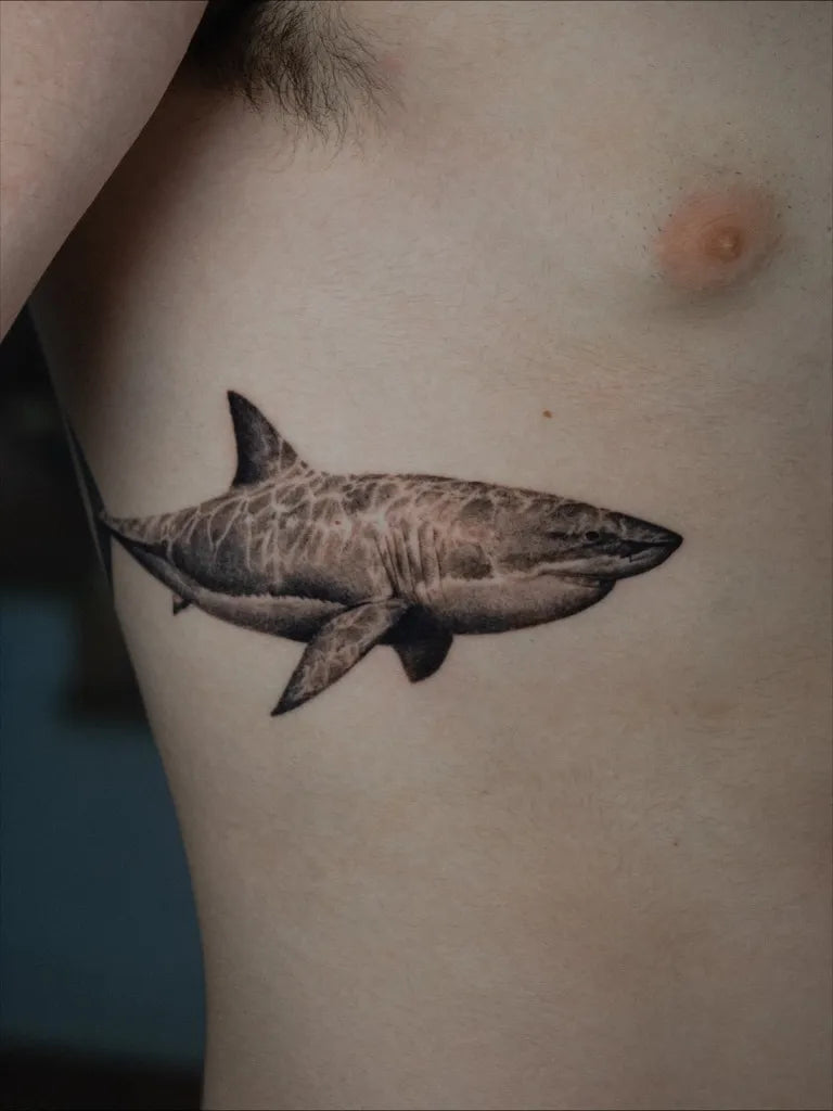 A shark tattoo is a bold emblem of power, survival, and unwavering focus. As apex predators, sharks symbolize fearlessness, confidence, and the instinct to keep moving forward. Whether you’re drawn to their sleek strength or their mythic presence across ocean cultures, a shark tattoo can represent resilience, independence, and respect for the sea.