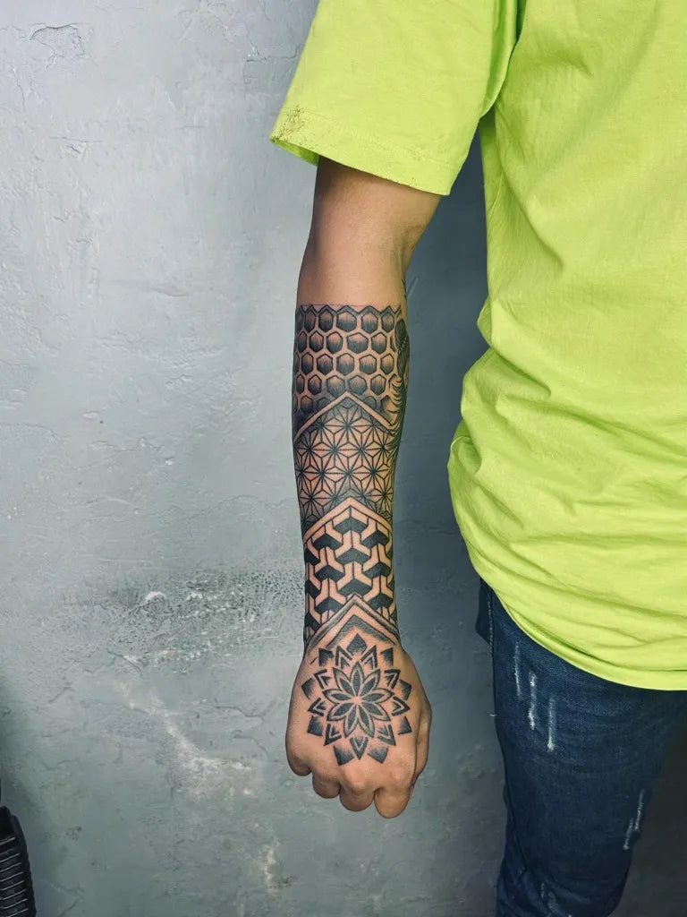 Big Geometric Mandala Patterns on Men Arm Sleeve Tattoo by @ganeshtattoo23
