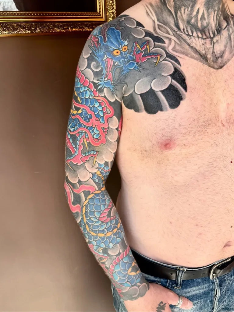 Big Japanese Dragon Clouds on Men Arm Sleeve Tattoo by @rod.de.moraes