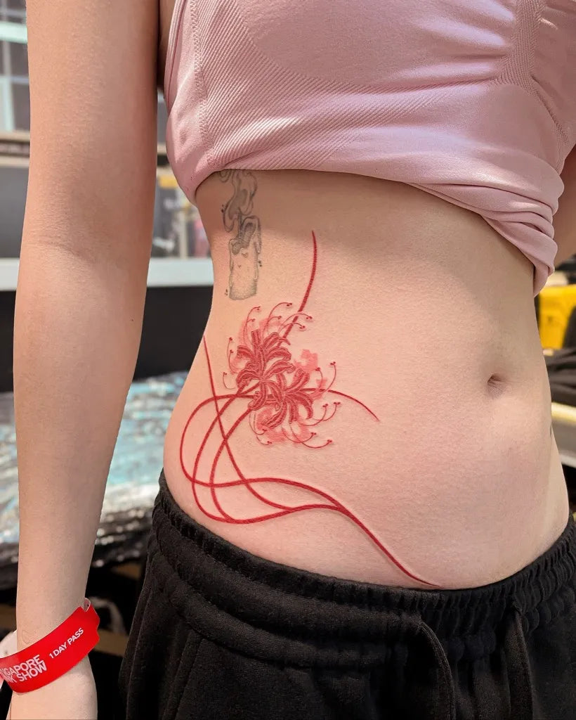 - Back or thigh: Large-scale spider lily tattoo scenes with multiple blooms and wind effects.