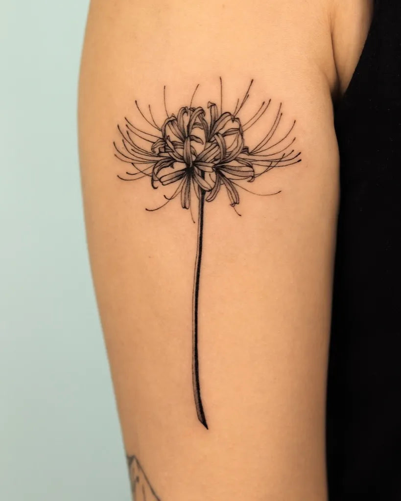 - Personalize your spider lily tattoo with celestial accents, metamorphic animals, or meaningful script, and choose a placement that complements the flower’s graceful, ribbon-like petals and your story.