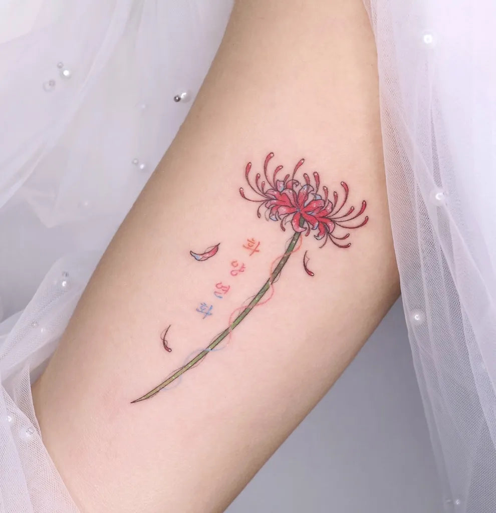 - A spider lily tattoo symbolizes remembrance, transformation, passionate emotion, protection, and resilience.