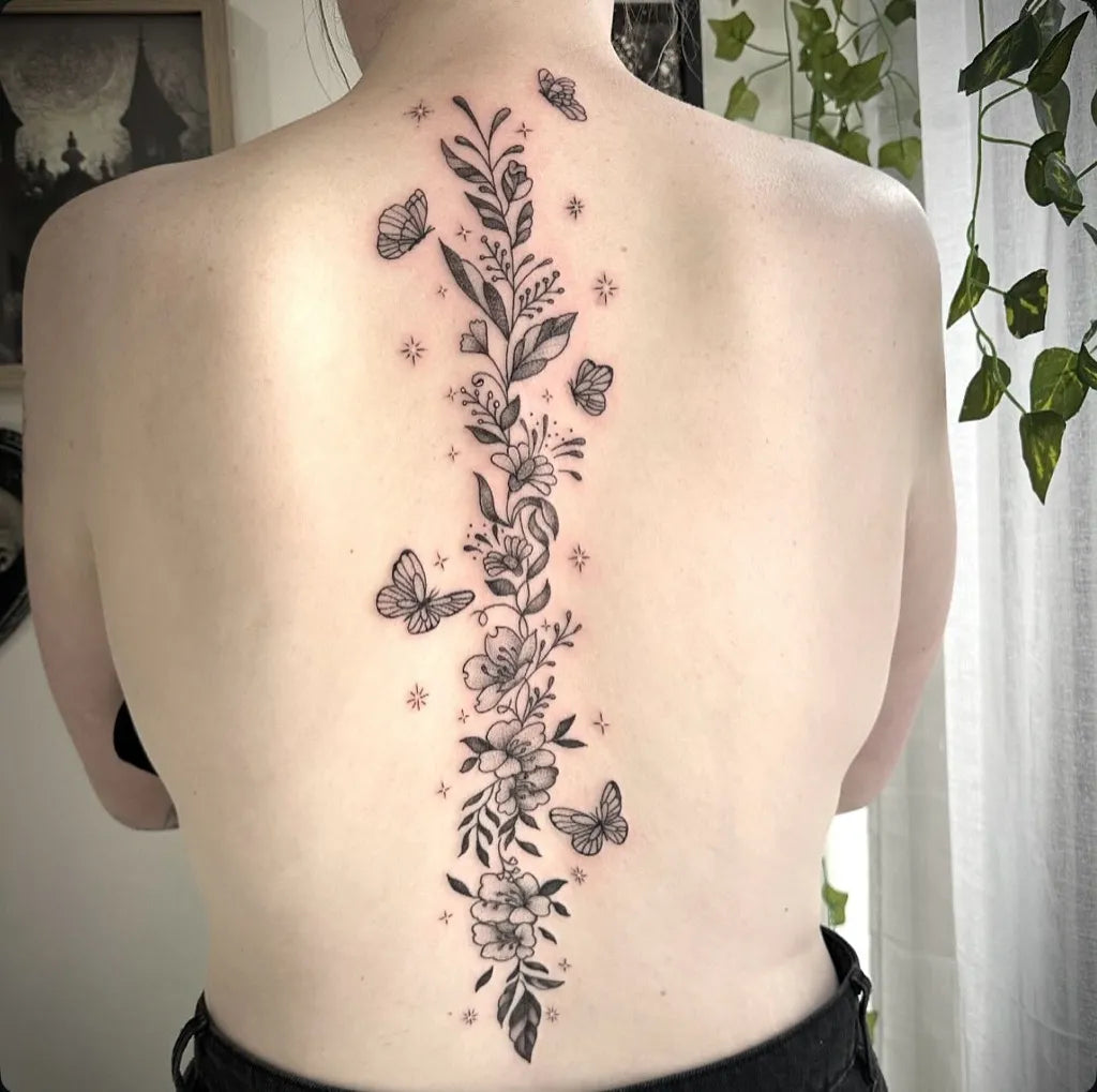- Aftercare: Spine tattoos heal in 2-3 weeks but may feel sore longer due to spinal movement. Keep the area clean, use fragrance-free moisturizer, and avoid tight clothing to prevent irritation.