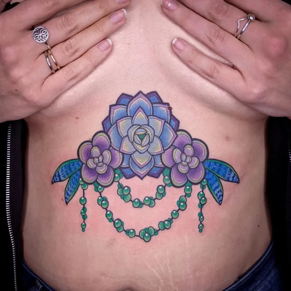 Big Succulent Flower Succulents on Women Sternum Tattoo by @janinetattoos
