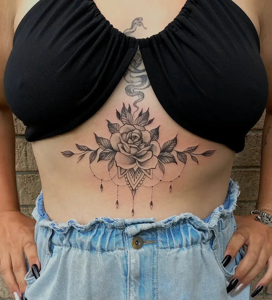 A sternum tattoo, often called an underbust or chest tattoo, is inked directly on the sternum or extends to the underbust area, particularly popular among women for designs that complement the body’s natural contours. These tattoos can range from small, delicate symbols like mandalas or flowers to larger, intricate pieces that wrap around the ribs or connect to shoulder tattoos. According to tattoo resources like Byrdie and Inked Magazine, sternum tattoos are prized for their symmetry and ability to be hidden or showcased depending on clothing choices.