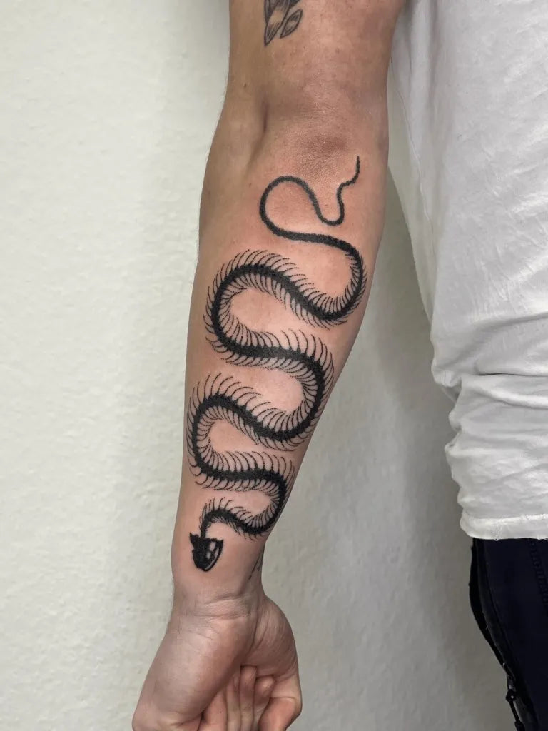 Big Stick and Poke Snake Tattoo on Men Arm by @jhg.tattoo