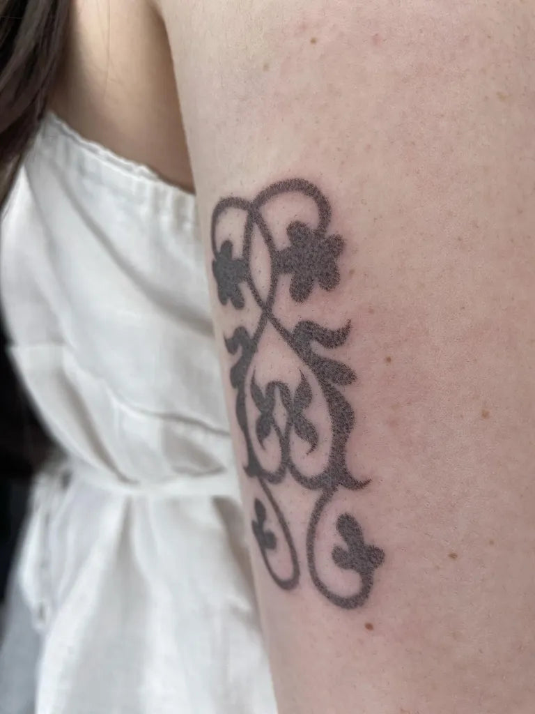 Small Stick and Poke Floral Vine Women Arm by @oopsiedaisy.tattoo