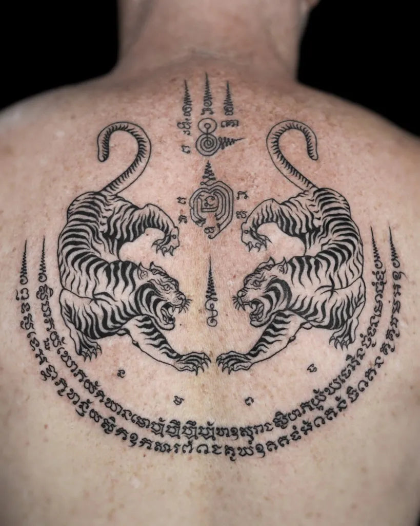 Big Sak Yant Tigers Men Back Tattoo by @alldaytattoobkk