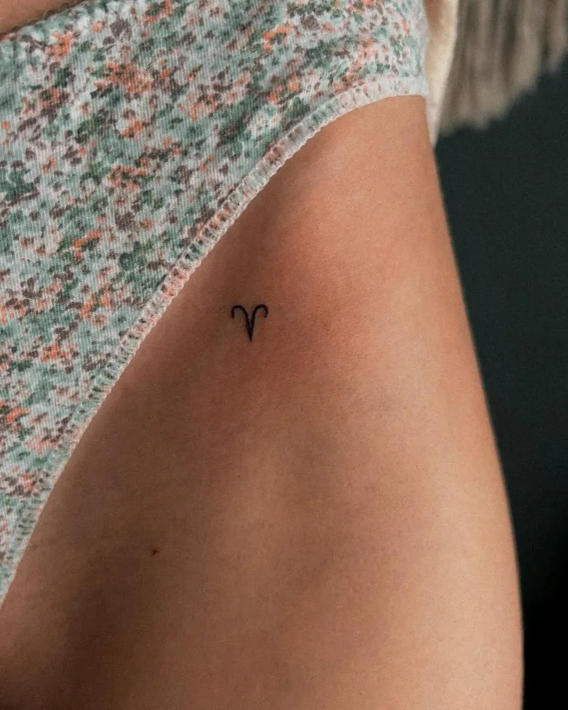 Tiny Minimalist Aries symbol on Women Hip Tattoo by @urbantattoobyrenatagui