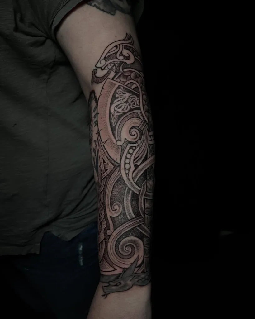 Big Viking DragonRunes on Men Arm Tattoo by @bonk_tattoo