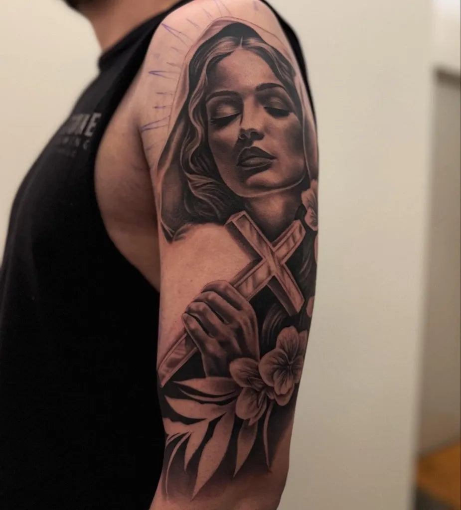 - A Virgin Mary tattoo symbolizes compassion, protection, faith, hope, and grace.