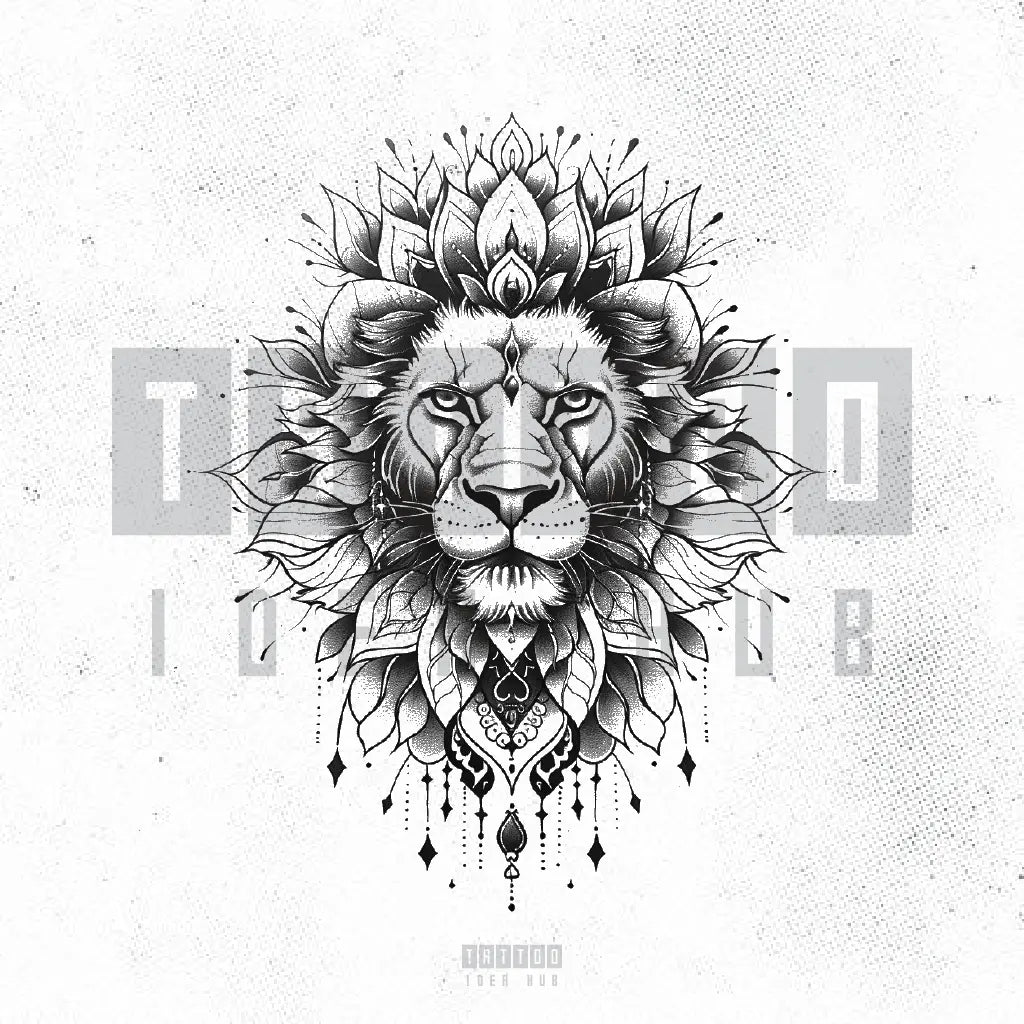 Instantly download this Lion Mandala tattoo design digital file, a printable PNG file with a transparent background, licensed for creating permanent tattoos. Available for immediate download.