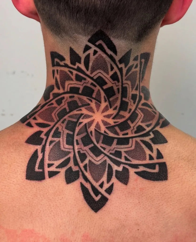 Big Geometric Mandala Flower on Men Neck Tattoo by @hontattoostudio
