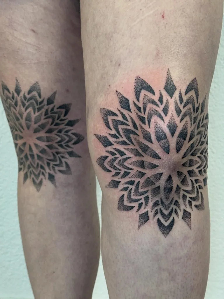 Small Geometric Mandala on Women Knees Tattoo by @levente.tarr