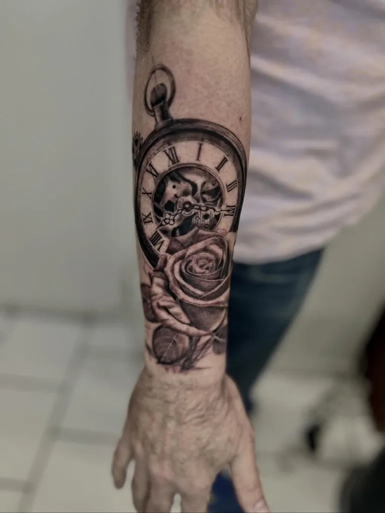 • Rose with elements: Combine with daggers (sacrifice/protection), clocks (time/memory), skulls (mortality/rebirth), or names/dates (personal tribute).
