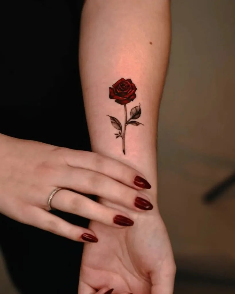 • Red rose tattoo: Passion, desire, and classic romantic love.