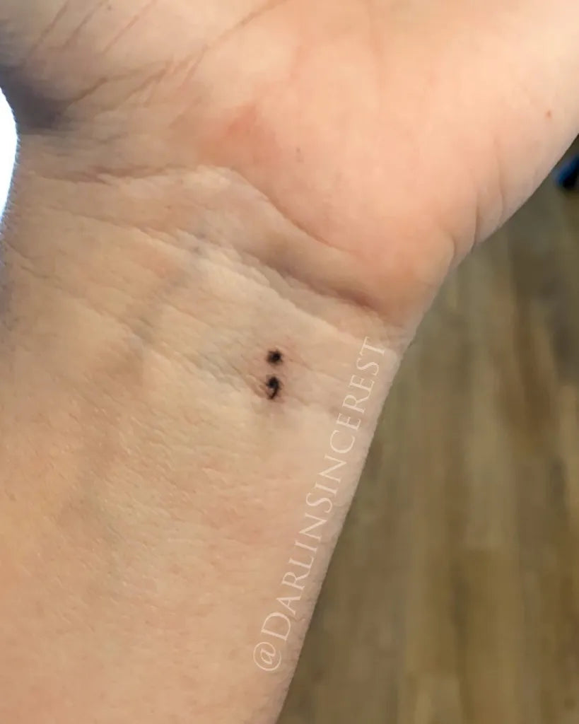 Tiny Minimalist Semicolon Dots on Women Wrist Tattoo by @darlinsincerest