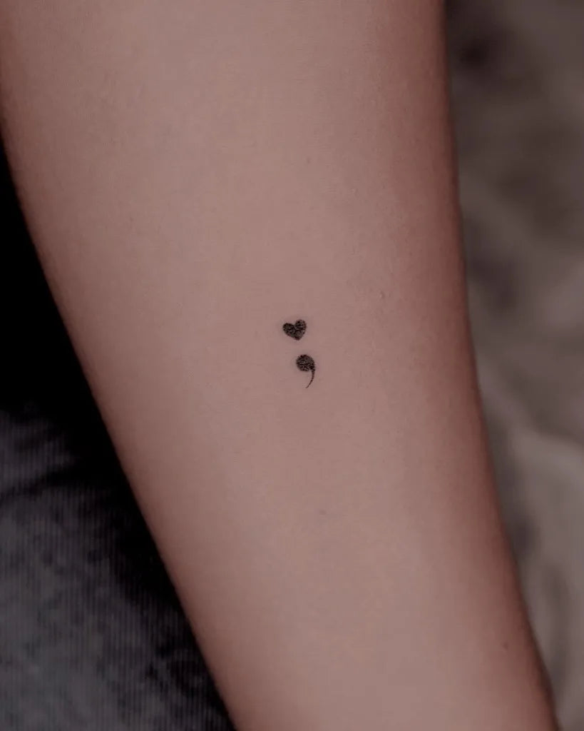 Tiny Minimalist Semicolon Heart on Women Arm Tattoo by @isoltattoo