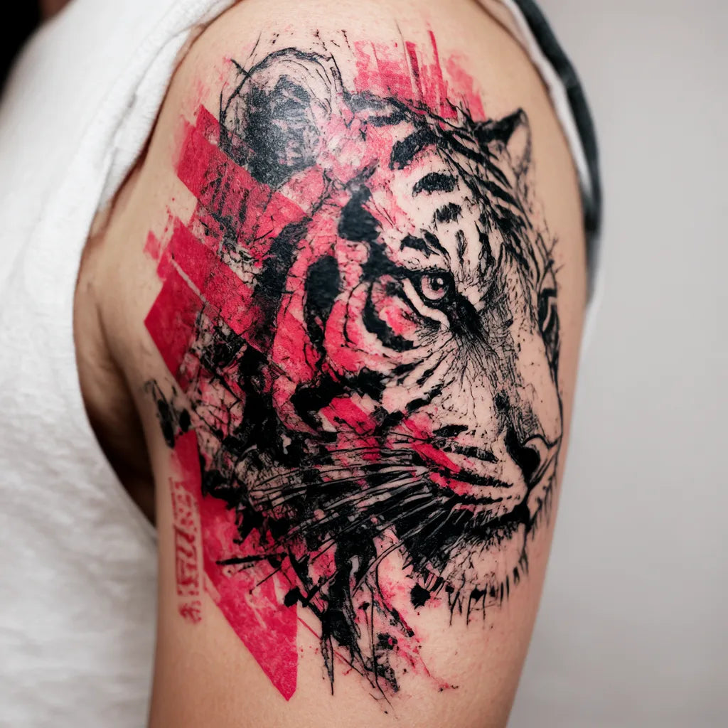 Trash Polka Tiger Tattoo