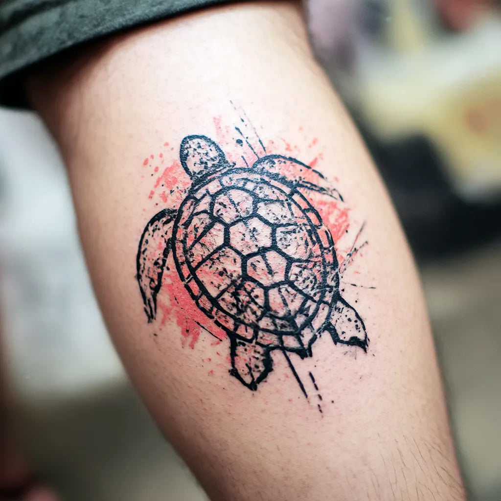 Trash Polka Turtle Tattoo